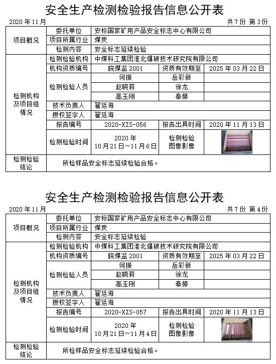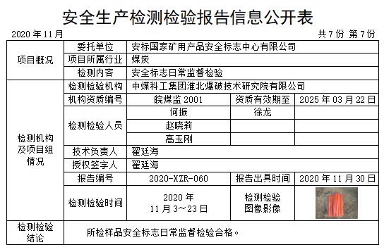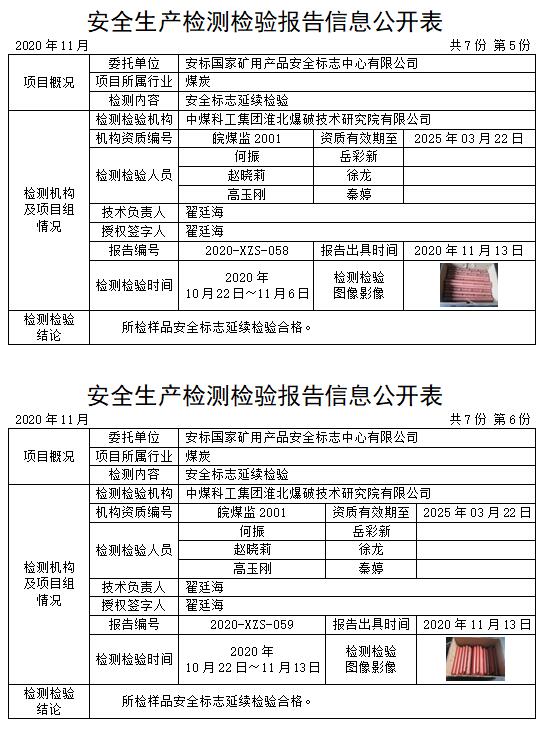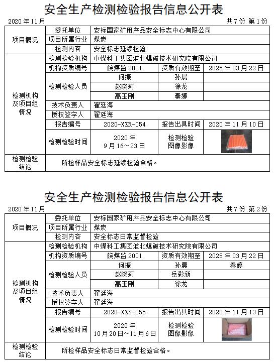 安全生产检测检验报告信息公开表(2020年11月)