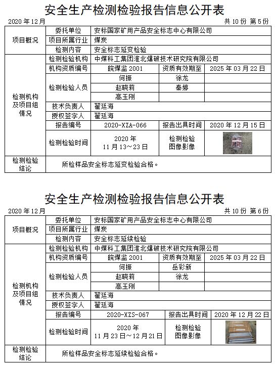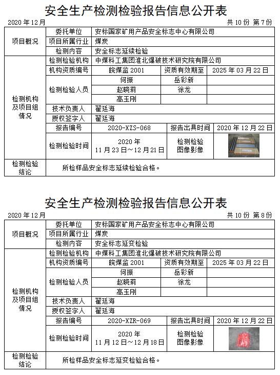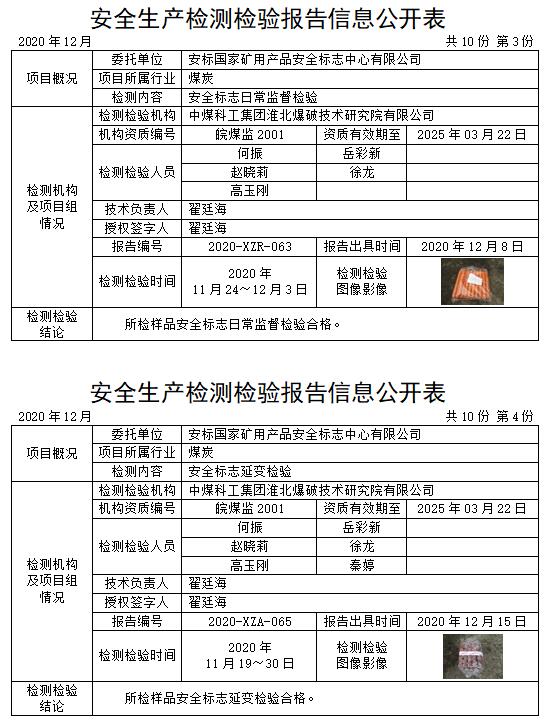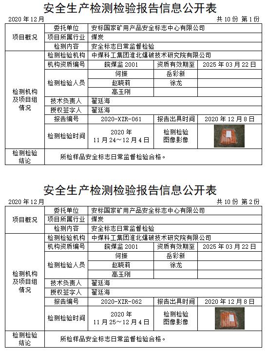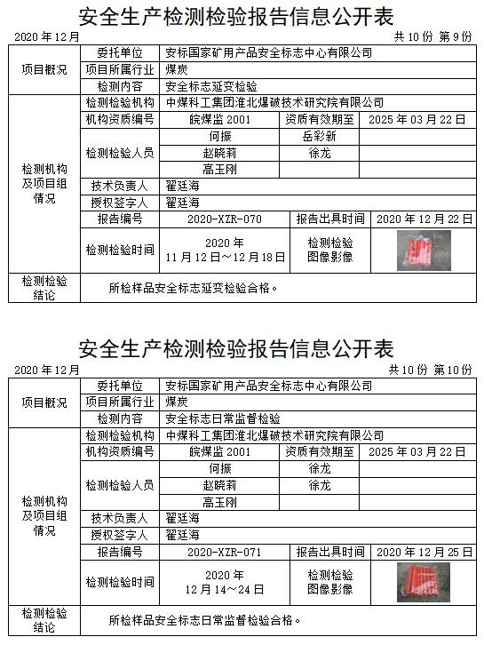 安全生产检测检验报告信息公开表(2020年12月)