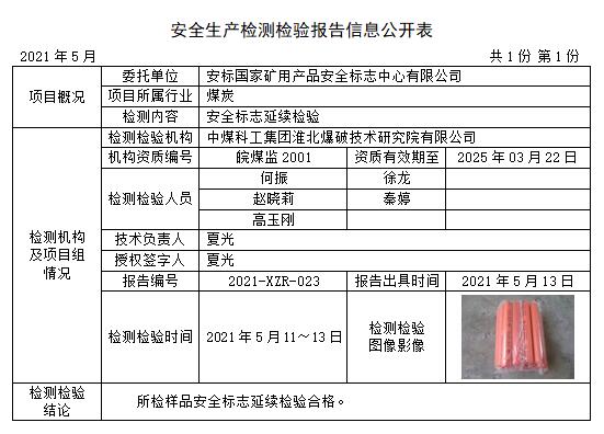 安全生产检测检验报告信息公开表(2021年5月)