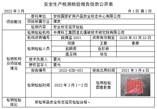 安全生产检测检验报告信息公开表(2022年03月)