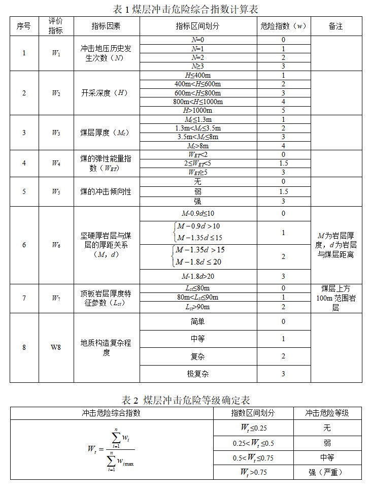 第十二条 煤层冲击危险性评价采用煤层冲击危险综合指数法,评价结果分为四级:无、弱、中等和强(严重)冲击地压危险。
