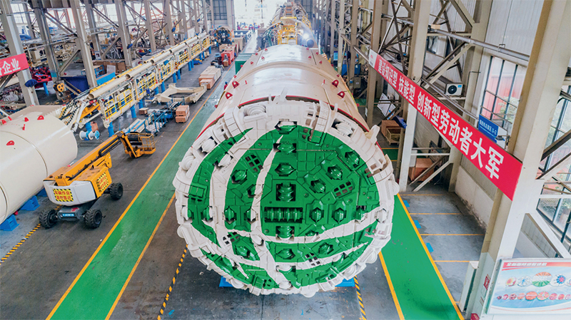 中央企业积极落实主题教育总要求,努力使主题教育成为提高企业核心竞争力、增强核心功能、推动企业攻克“卡脖子”核心技术难题的过程。图为2023年4月20日,全球首台可变径斜井岩石隧道掘进机“天岳号”在中国铁建重工集团长沙第一产业园下线。 国务院国资委供图