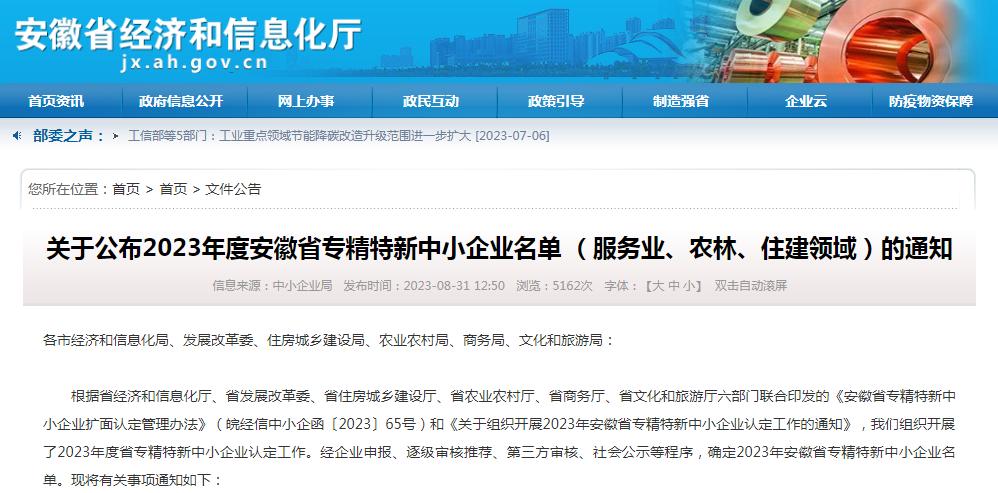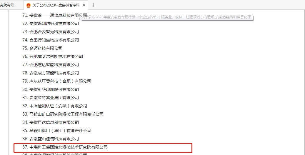 近日,在安徽省经济和信息化厅网站公布的2023年安徽省专精特新中小企业名单中,爆破分院成功入选。根据《安徽省专精特新中小企业倍增行动方案》(皖政办〔2022〕2号)和2023年省政府重点工作安排,本次爆破分院须同时申报2023年省级专精特新中小企业认定和创新型中小企业评价,时间紧,任务重,经过精心准备,在多部门协同努力下,完成了线上资料填报和线下资料送审,通过逐级审核推荐、第三方审核、社会公示等程序,最终获评为安徽省创新型中小企业和安徽省专精特新中小企业。