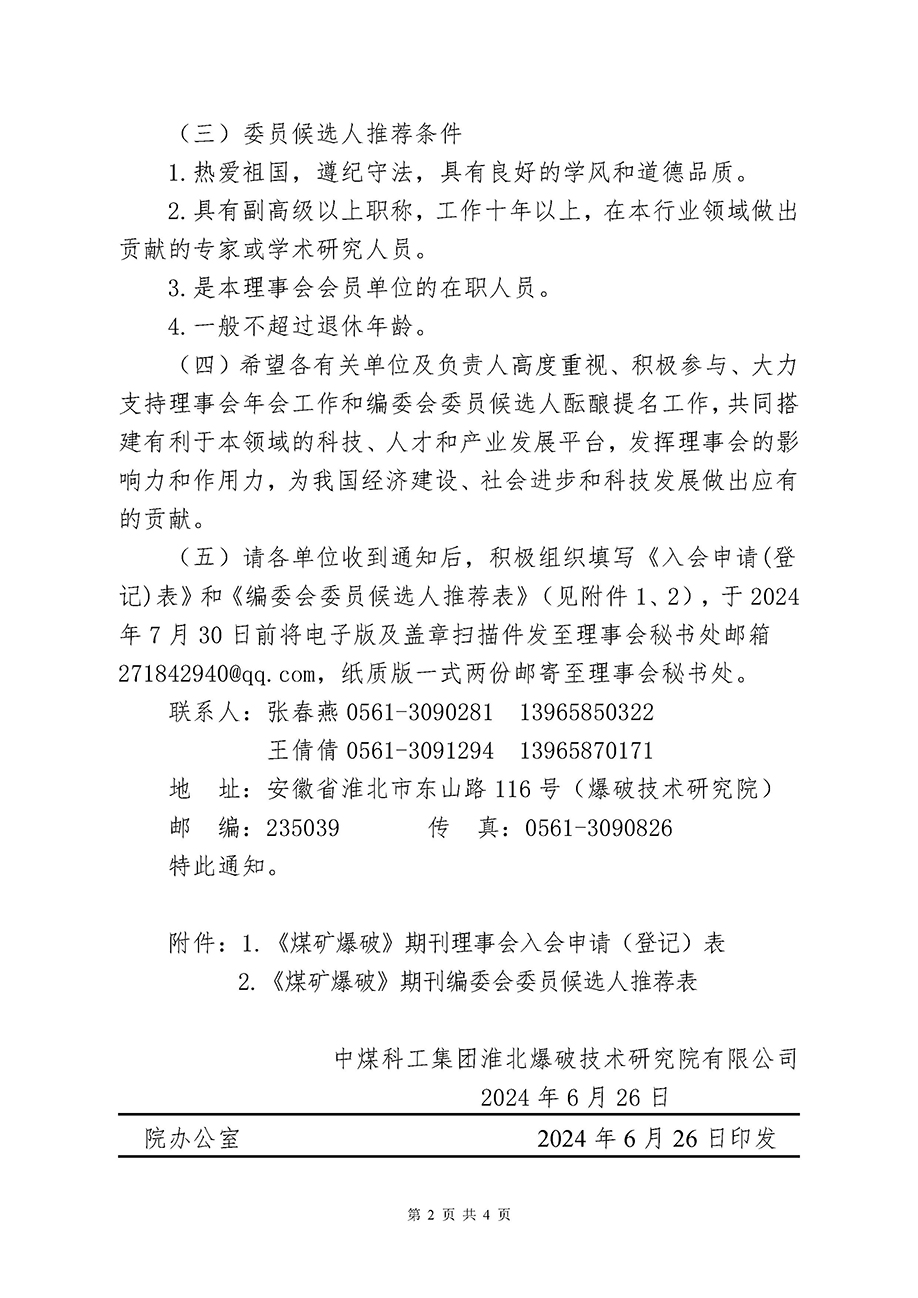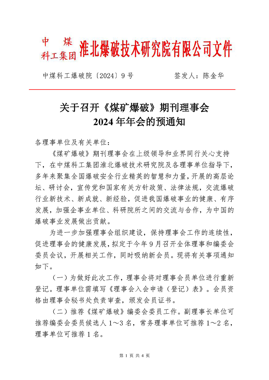 关于召开《煤矿爆破》期刊理事会 2024年年会的预通知
