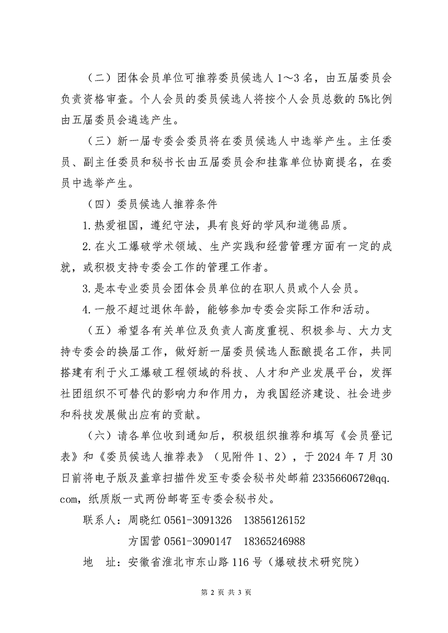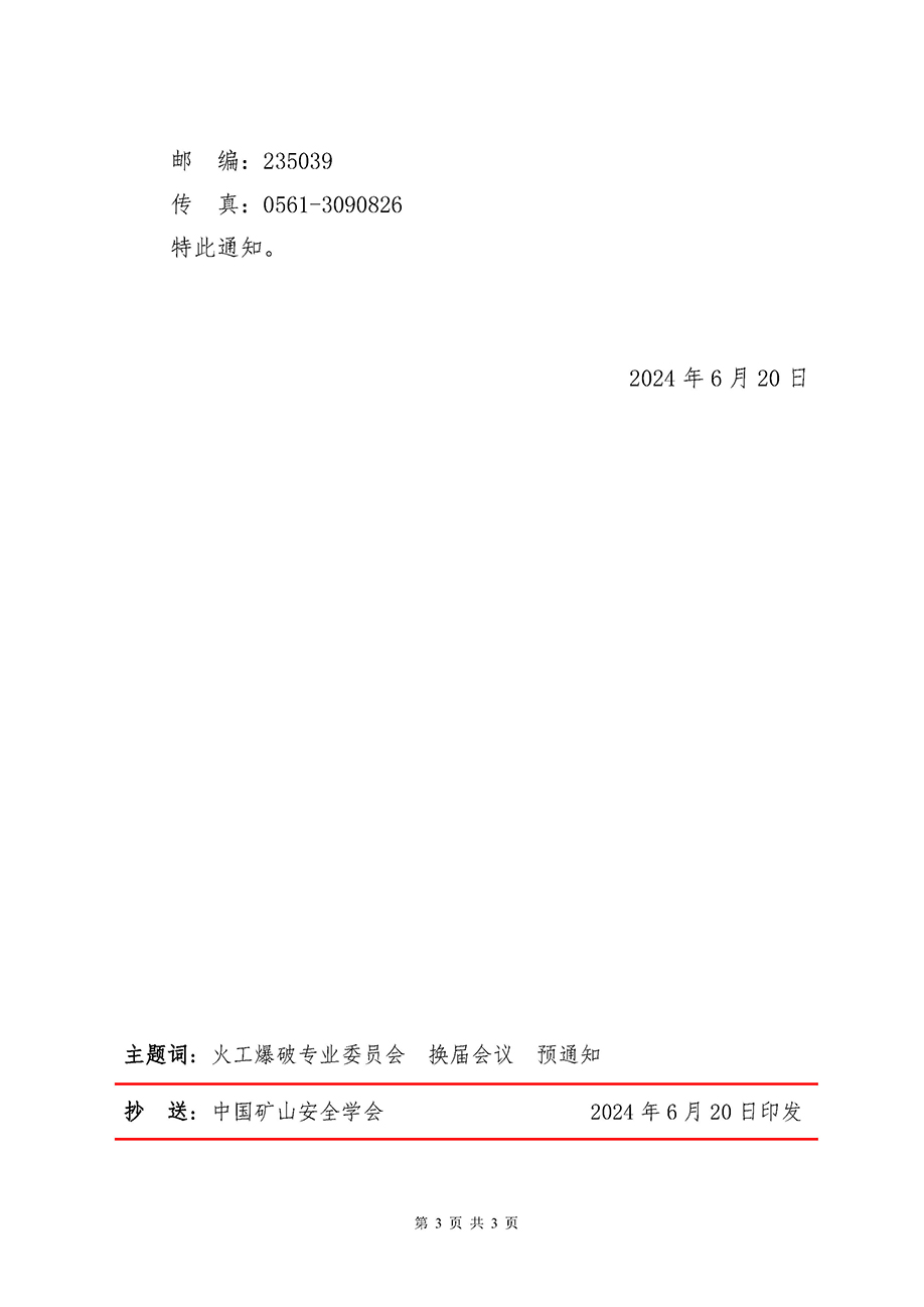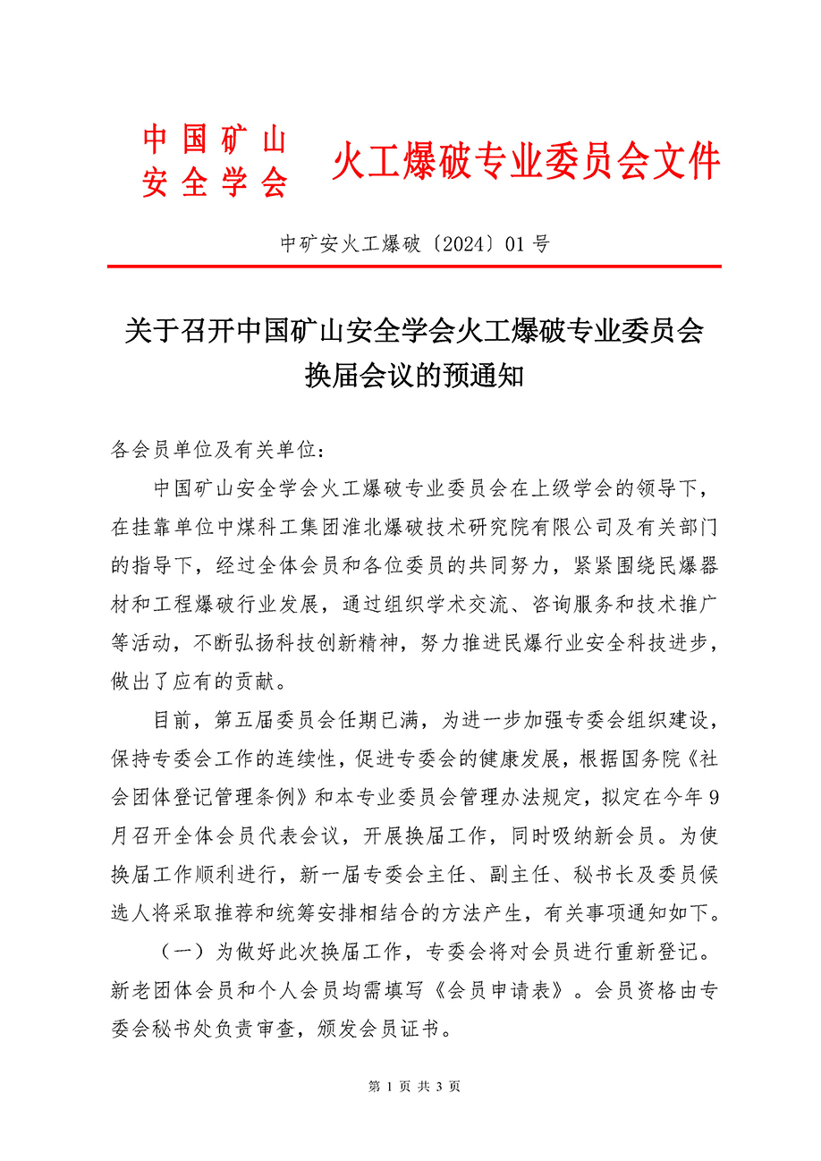 关于召开中国矿山安全学会火工爆破专业委员会 换届会议的预通知