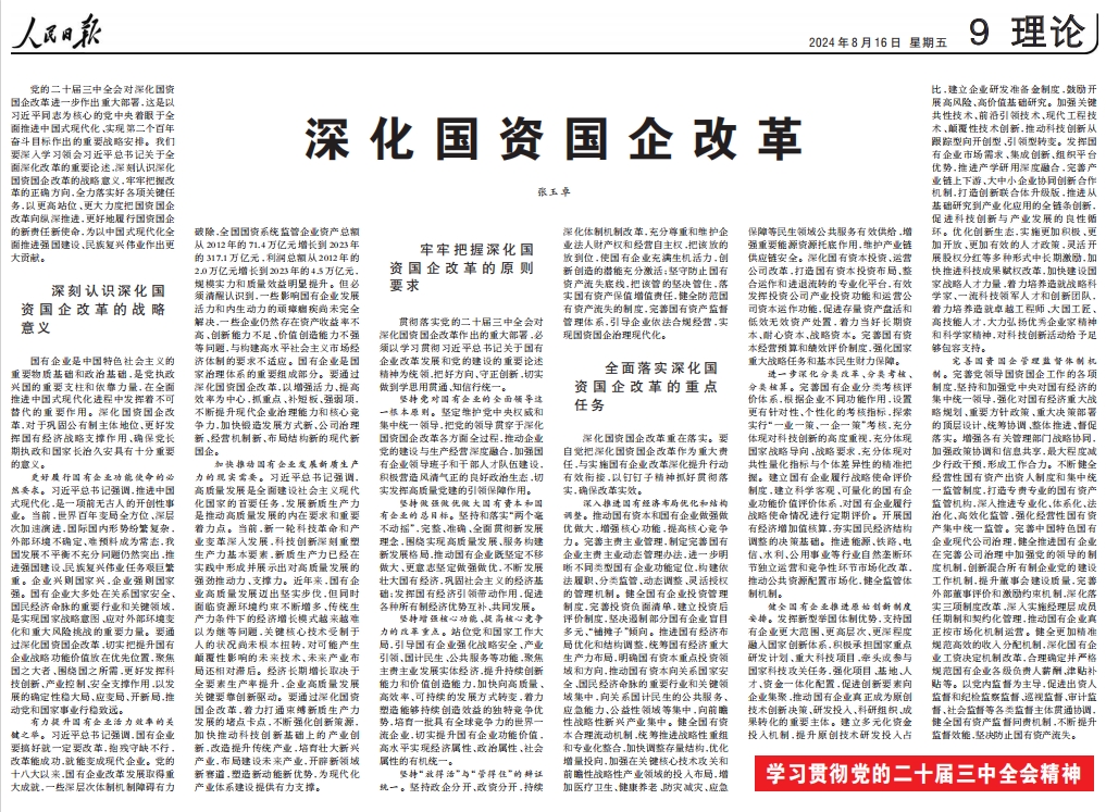 《人民日报》刊发张玉卓署名文章:深化国资国企改革
