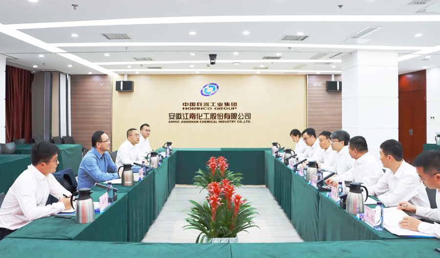 江南化工总裁代五四对陈金华院长一行到访表示热烈欢迎,介绍了江南化工改革历程和业务发展情况,他表示,江南化工是民爆及新能源业务“双核驱动”的上市公司,是兵器工业集团打造国家民爆现代产业链“链长”的核心单位,并对爆破院长期以来对江南化工的鼎力支持表示认同和感谢。