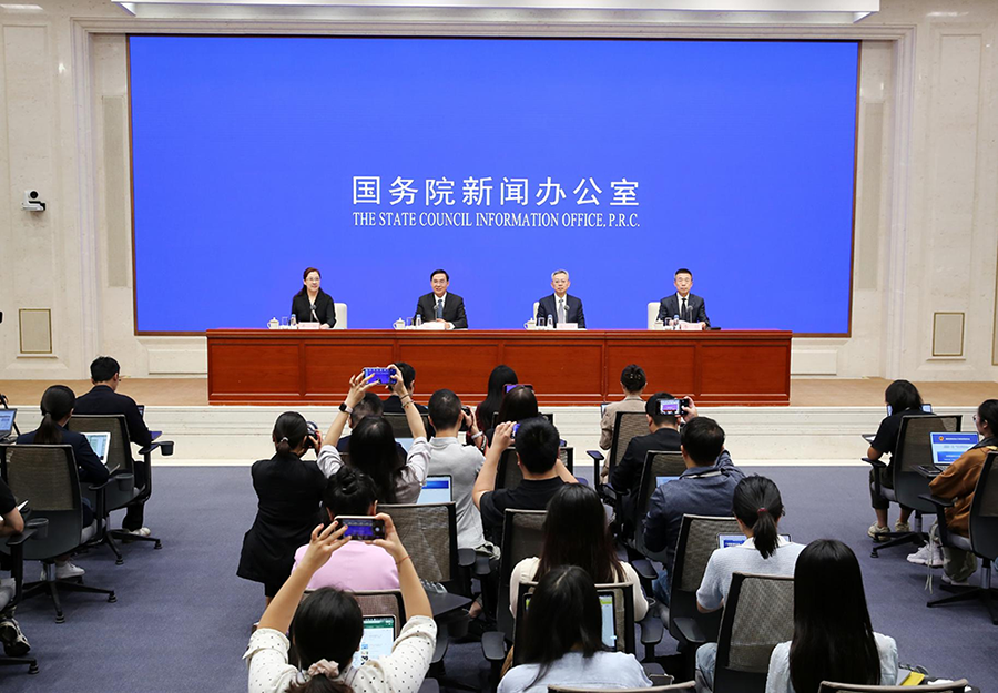 9月17日,国务院新闻办公室举行“高质量完成‘十四五’规划”系列主题新闻发布会,国务院国资委党委书记、主任张玉卓,党委委员、副主任袁野和李镇出席,介绍“十四五”时期中央企业高质量发展情况并答记者问。