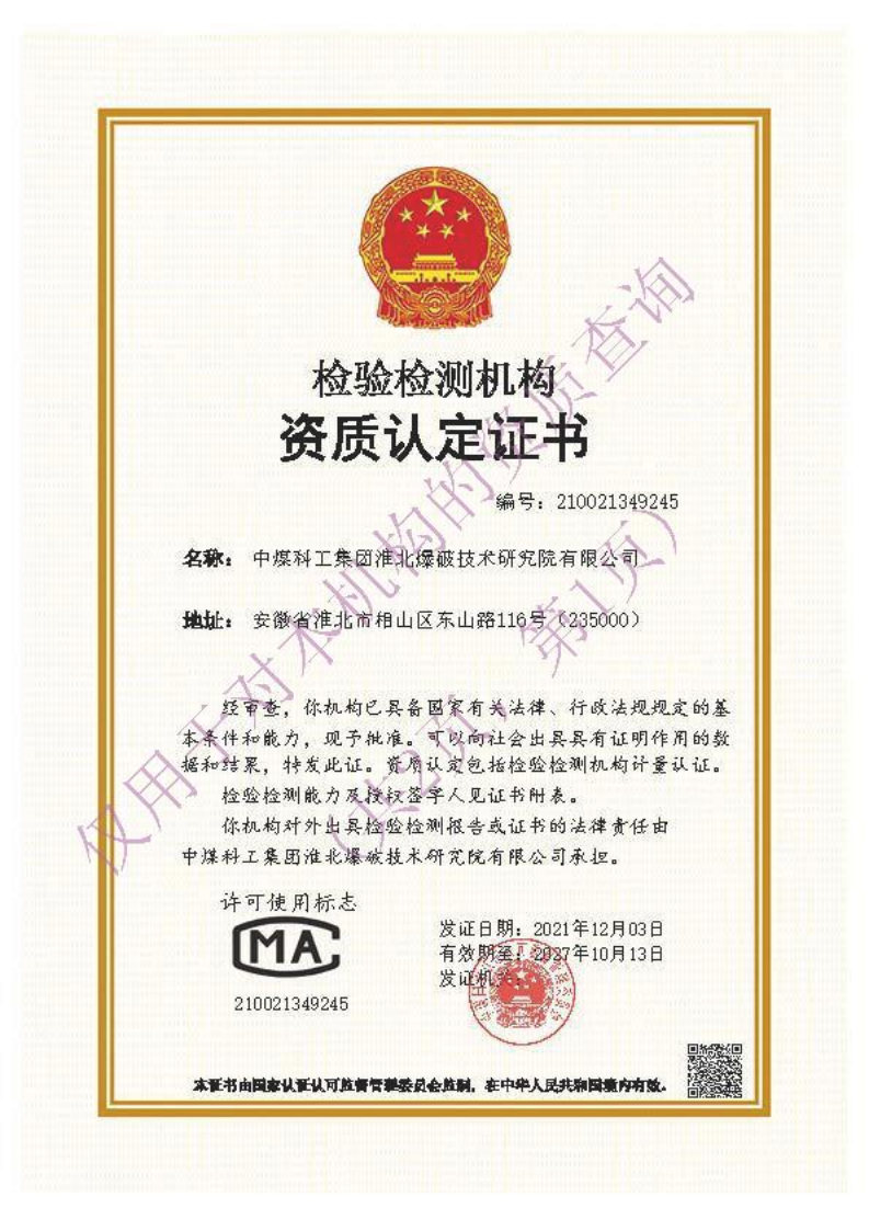 实验室的主要检验产品是用于民用爆破工程的炸药、雷管、索类以及相关的爆破器材,出具的检验报告,具有法律效力。