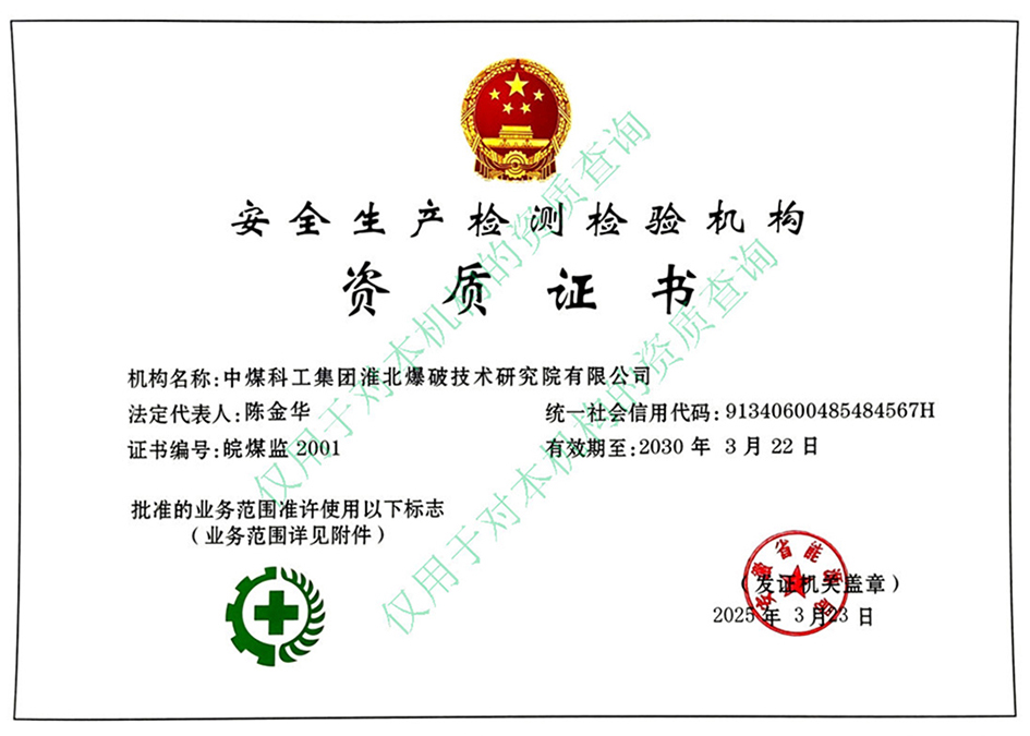 安全生产检测检验机构资质证书,证书编号:皖煤监2001